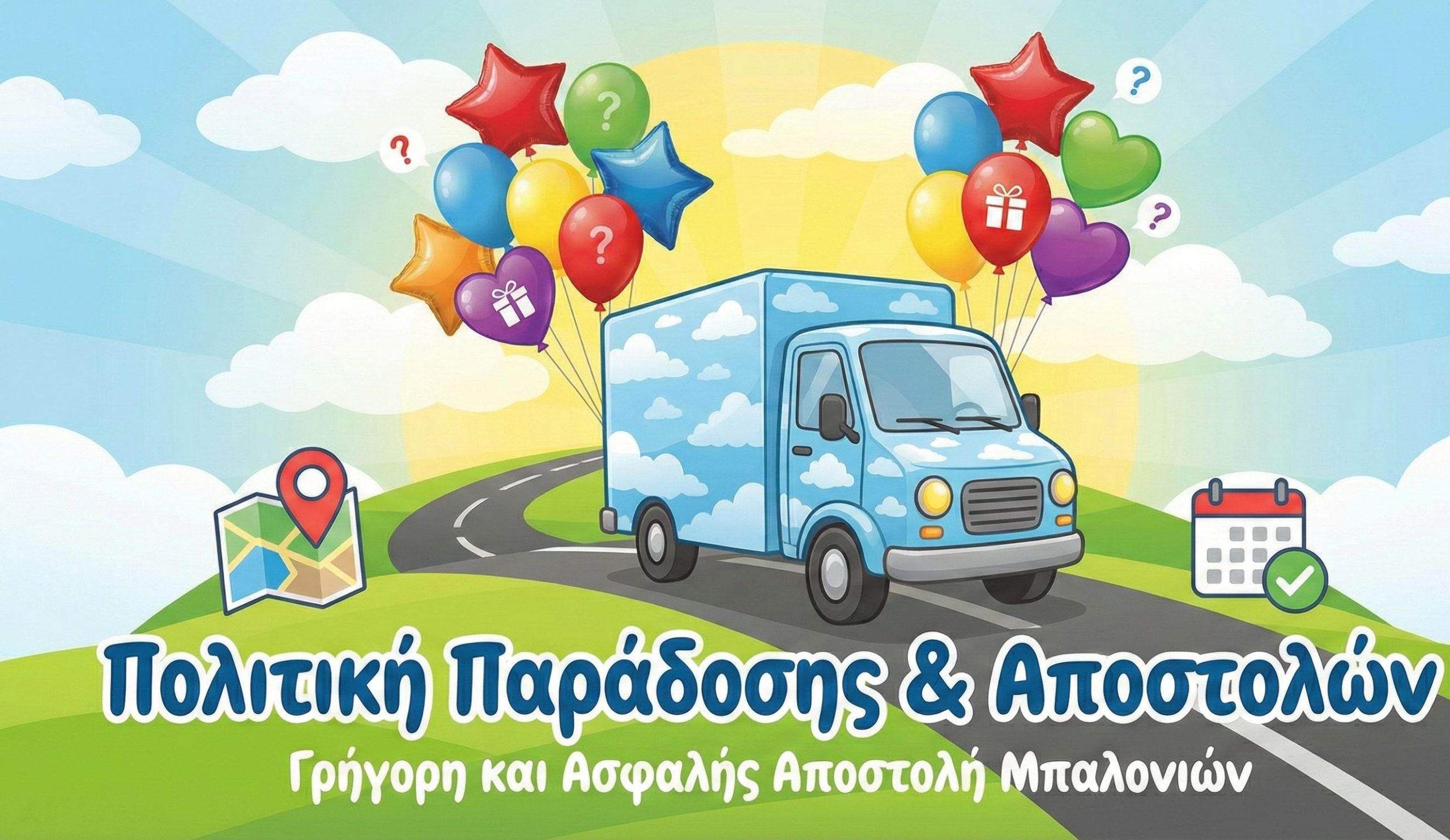 Ενημερωθείτε για τις ζώνες εξυπηρέτησης, τα έξοδα αποστολής και την ασφαλή, αυθημερόν παράδοση των μπαλονιών στον χώρο σας.
