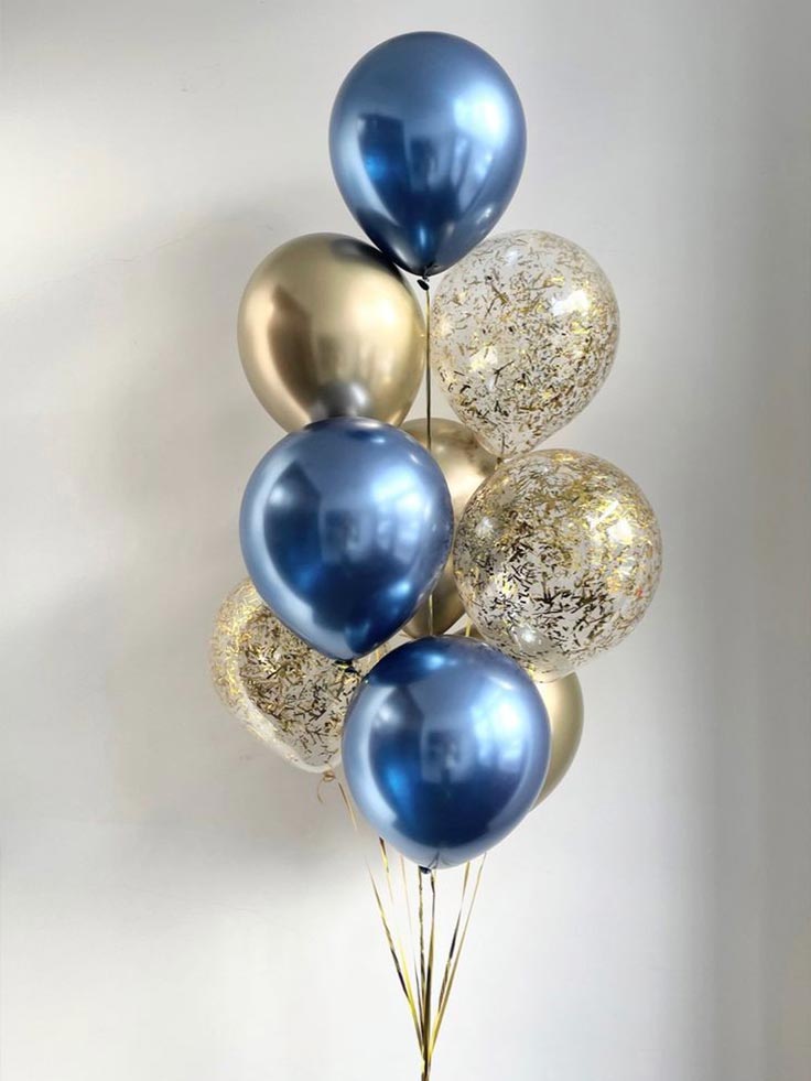 Μπουκέτο Μπαλονιών σε Βασιλικό Μπλε με Διάφανο Μπαλόνι και Χρυσό Confetti – Ιδανικό για Γενέθλια & Κάθε Εκδήλωση